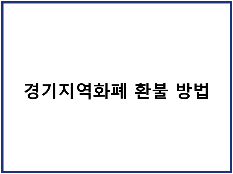 경기지역화폐의 충전금을 환불받는 방법은 몇 가지 주요 사항을 숙지하면 어렵지 않습니다. 사용자가 이해하기 쉽도록 단계별로 자세히 설명해 드리겠습니다. 경기지역화폐 환불은 일반적으로 충전 후 일정 기간 이내에 가능하며, 특정 조건이 충족되어야 합니다.