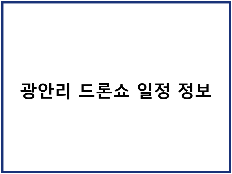 광안리 드론쇼 일정 정보