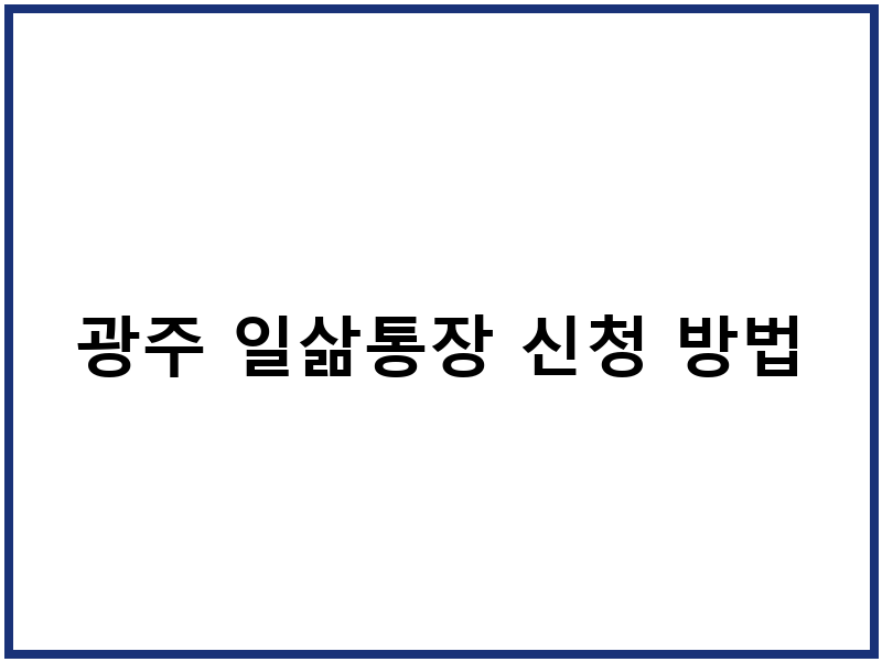 광주 일삶통장 신청 절차 및 기간