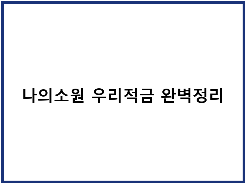 나의소원 우리적금 완벽정리