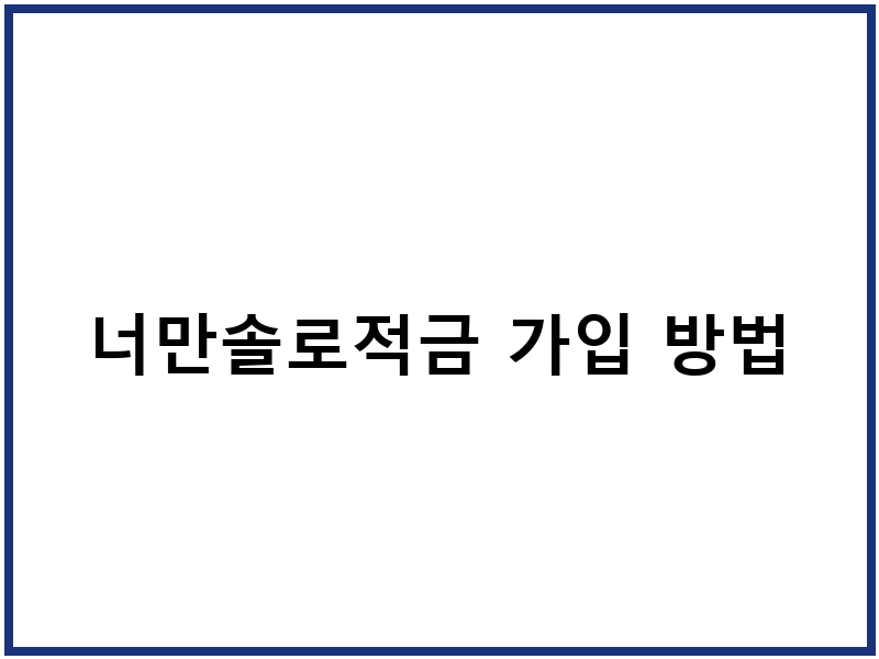 너만솔로적금 가입 방법