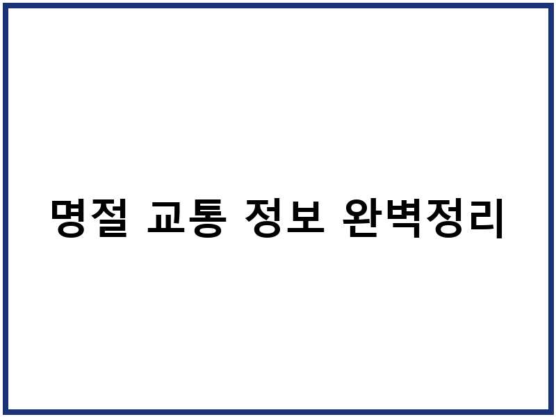 민족 대명절이 다가오면 고향을 찾는 발걸음이 분주해집니다. 하지만 늘어나는 차량으로 인해 도로 곳곳에서 교통 체증과 주차난이 발생하여 귀성 및 귀경길이 순탄치만은 않습니다. 이러한 상황 속에서 안전하고 여유로운 명절 교통을 위한 최신 교통 정보와 전략을 미리 파악하는 것이 중요합니다. 명절 교통 정보는 여러분의 소중한 시간을 절약하고 스트레스를 줄여줄 핵심 열쇠가 될 것입니다.