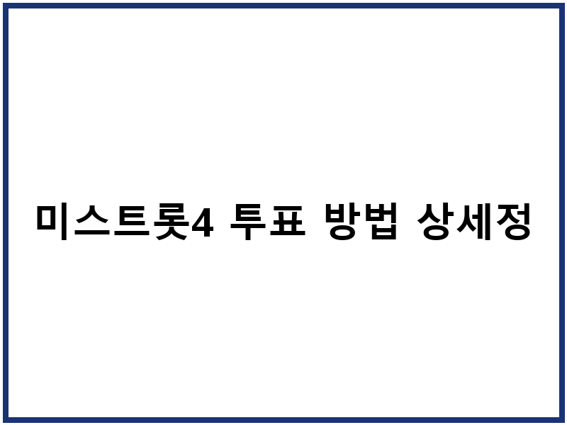 국민적인 인기를 얻고 있는 미스트롯4의 실시간 투표 참여 방법을 상세하게 안내해 드립니다. 시청자 여러분의 소중한 한 표가 프로그램의 결과를 직접적으로 좌우하는 만큼, 정확한 투표 절차와 시점을 파악하는 것이 중요합니다. 본 콘텐츠에서는 문자 투표와 온라인 투표 참여 방법, 투표 가능한 시간, 그리고 유의사항까지 한눈에 확인하실 수 있도록 총정리했습니다.