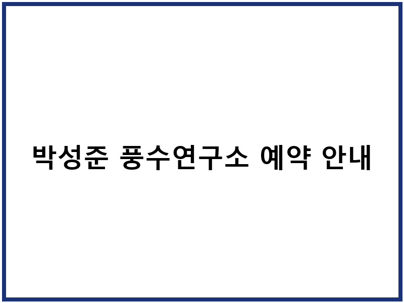 박성준 풍수연구소 예약 절차