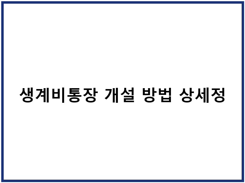 | 개설 절차 | 금융기관 방문 → 상담 및 서류 제출 → 계좌 개설 심사 → 통장 개설 완료 |