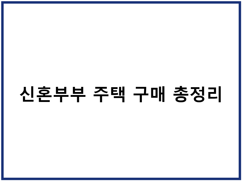 신혼부부 주택 구매 대출의 이해