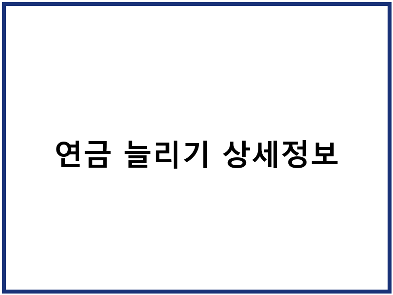 연금 늘리기 상세정보