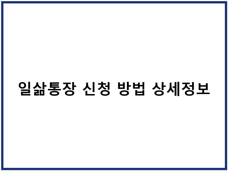 일삶통장 신청 방법 상세정보