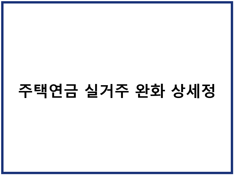 주택연금 실거주 완화 상세정보