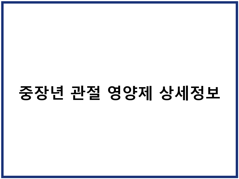 중장년층은 신체 노화에 따라 관절 건강에 대한 관심이 높아지는 시기입니다. 이러한 시기에 관절 영양제 섭취는 관절 기능 개선 및 유지에 도움을 줄 수 있습니다. 하지만 어떤 관절 영양제를 선택해야 할지, 그리고 올바르게 섭취하는 방법에 대해 궁금해하는 분들이 많습니다. 본문에서는 중장년 관절 영양제에 대한 상세 정보를 제공하며, 섭취 시 주의해야 할 사항들을 안내해 드리겠습니다.
