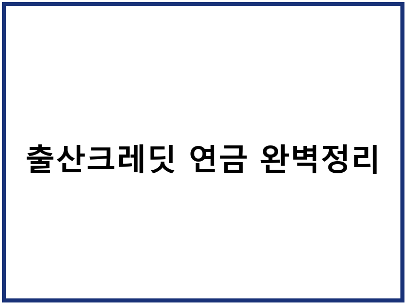 출산크레딧 연금 신청 및 관리 방법
