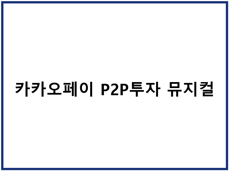 카카오페이 P2P투자는 개인 투자자들이 다양한 프로젝트에 직접 자금을 공급하는 투자 방식입니다. 전통적인 금융상품과 달리 카카오페이 P2P투자는 문화예술 분야를 포함한 다양한 영역의 투자 대상을 제공합니다. 이를 통해 개인 투자가들이 뮤지컬과 같은 공연 콘텐츠에 직접 참여하고 수익을 기대할 수 있게 되었습니다.