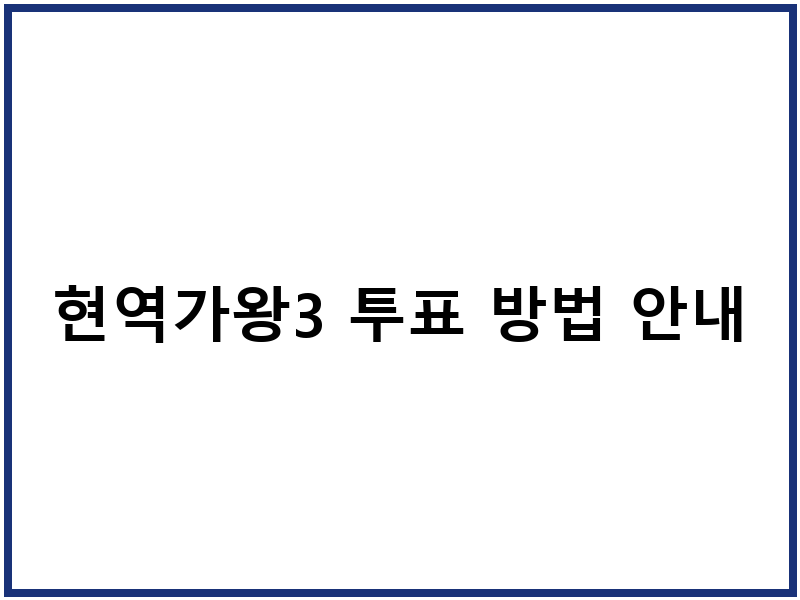 현역가왕3 투표는 단순한 응원을 넘어 프로그램의 결과에 직접적으로 영향을 미치는 중요한 참여입니다. 단 1분이면 충분히 참여할 수 있으니, 여러분이 응원하는 가수가 있다면 오늘부터 꾸준히 투표에 참여하여 그들의 꿈을 응원해 주세요.